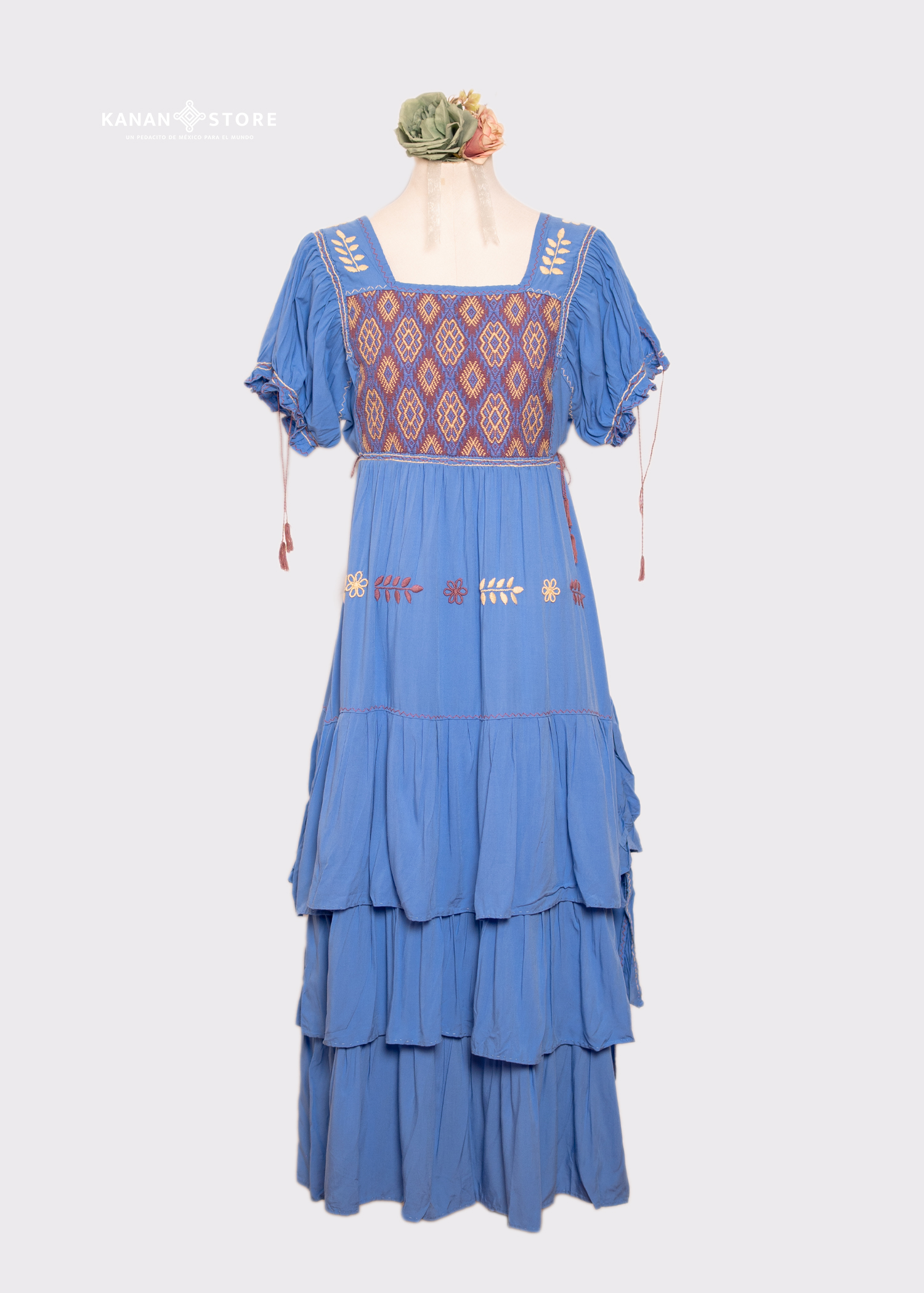 ¡Nuevo modelo! Vestido Valeria con bordado hecho en telar de cintura y olanes en la parte inferior.